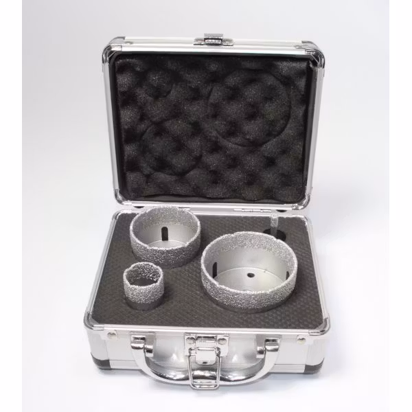 Borrsatsen innehåller 4 stycken borrar: Ø 6, 28, 55 och 70 mm.