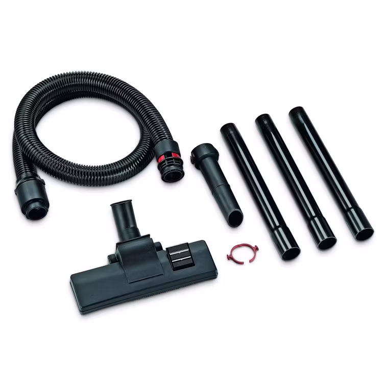 Städsettet innehåller sugslang, inner-Ø 32 mm x 1,5 m med bajonettkoppling, gängring clip med tjuvluftsreglering (487.171), clip-snabbspännring röd (406.023), 3 st 360 mm förlängningsrör av plast, handrör K-C 32 HT (487.198) och ett kombi-munstycke med borst- och gummilist. För hårda och mjuka golvbeläggningar, passar till Flex VC 6 L MC