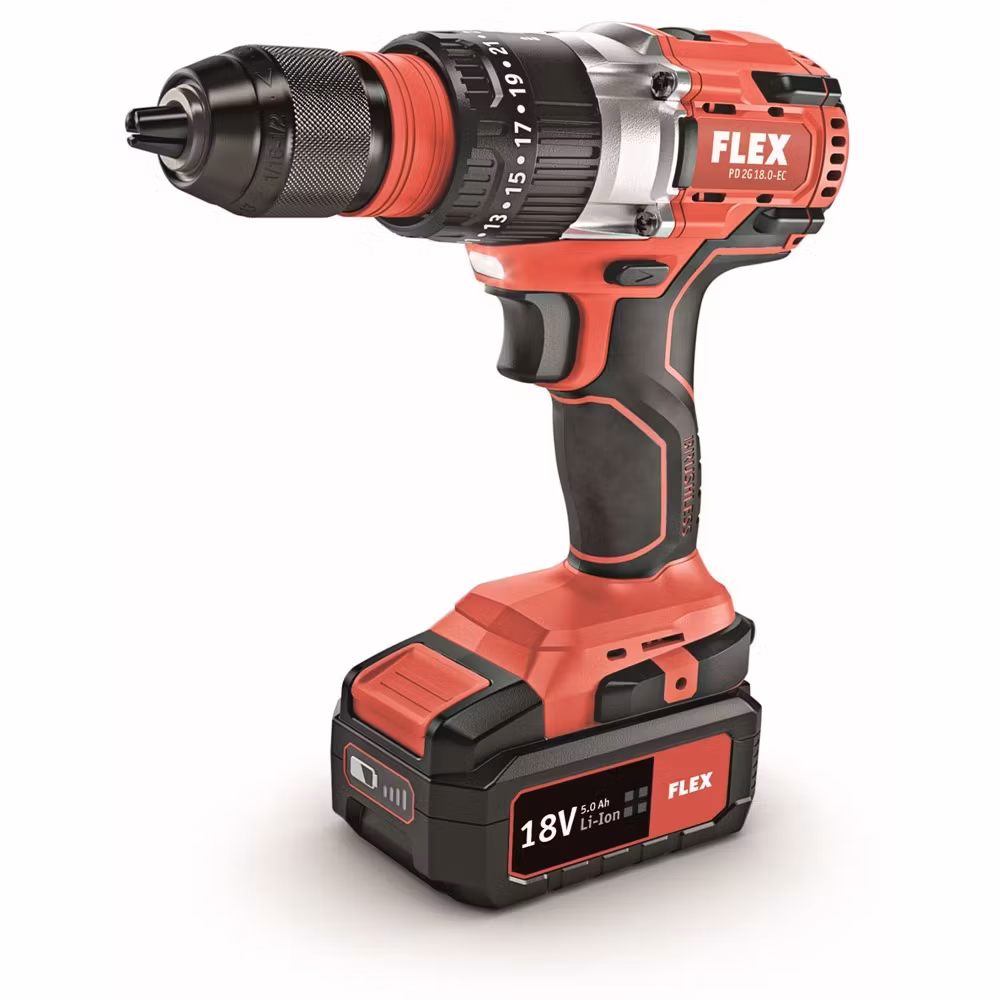 FLEX Skruvdragare med slag 2-växlad 18,0 V 56/90Nm 2x5.0Ah & Laddare L-Boxx