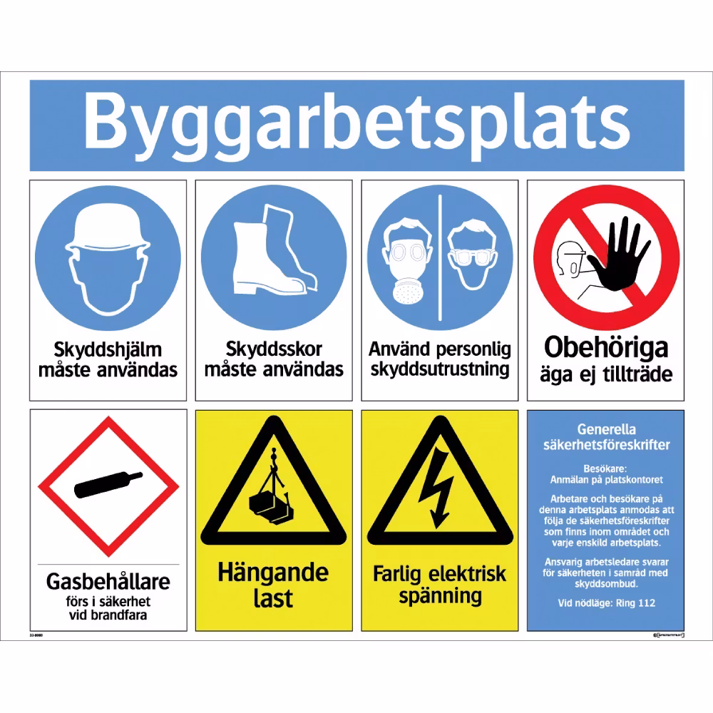 Standardstorlek: Med en standardstorlek är denna skylt lämplig för olika byggarbetsplatser och platser där byggaktiviteter pågår.
